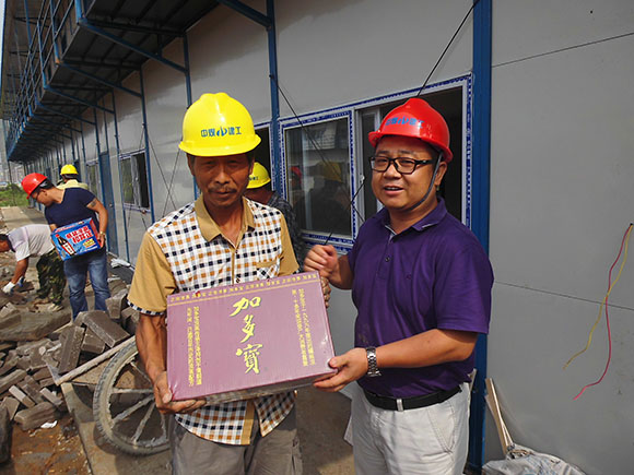 7月23日上午,第一工程总承包部党支部书记高培恩在工程部副经理王涛的陪同下,来到江苏句容“濠锋星钻”项目部开展了以“送清凉、请诉求、解难事、传递正能量”为主题的夏日送清凉慰问活动。