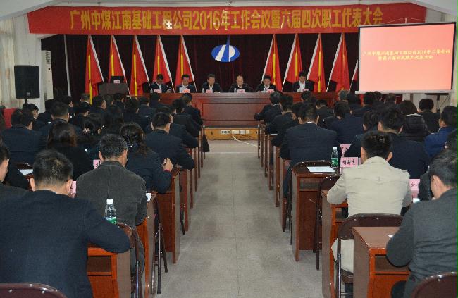 2月19日,广州中煤江南基础工程公司2016年工作会议暨六届四次职工代表大会在嘉禾大院二楼会议室召开,会上审议通过了2015年工作报告和工会工作报告,改选了公司工会委员会主席,听取了工会经费和“三公”经费使用情况以及提案征集情况报告。公司党委书记、总经理武岳彪作工作报告,强调要调结构、促转型、拓市场、谋发展,为公司持续健康发展而奋斗;党委副书记、纪委书记、副总经理、工会主席冯国平作工会工作报告并作总结讲话;副总经理秦凯作安全质量工作报告;总会计师夏闯作财务工作报告;副总经理李兴林,张凤祥出席会议。